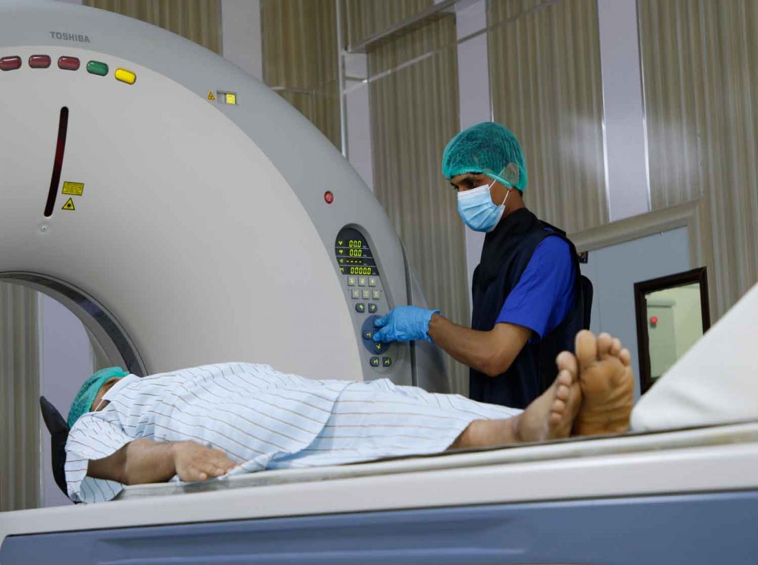 CT Scan is very essential for early diagnosis. This machine provides fast scanning of patient, high quality images, and less radiation dose to the patient.